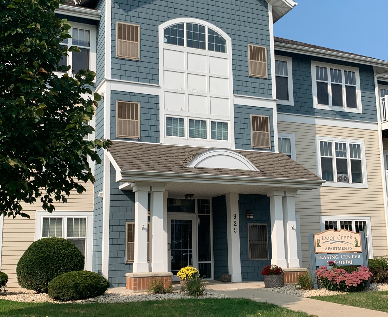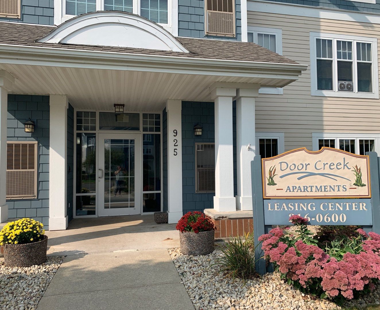 The Door Creek Apartments is a 132-unit apartment community consisting of one or two-bedroom units. Door Creekâs amenities include controlled-access entry, underground parking and a dog park as well as upgraded amenities in the units and common areas. With access to the Glacial Drumlin Bike Trail and its convenient location beside the Door Creek Golf Course, the Door Creek Apartments are perfect for nature lovers seeking luxury amenities.